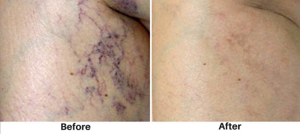 Injection of Sclerotherapy (spider veins) effectively treats spider veins. It's often considered the treatment of choice for small veins. Sclerotherapy involves injecting a solution directly into the vein. The sclerotherapy solution causes the vein to scar, forcing blood to reroute through healthier veins. The collapsed vein is reabsorbed into local tissue and eventually fades. After sclerotherapy, treated veins tend to fade within a few weeks, although occasionally it may take a month or more to see the full results. In some instances, several sclerotherapy treatments may be needed. Sclerotherapy is often done for cosmetic purposes - to improve the appearance of spider veins.