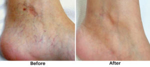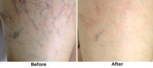 Vein treatments use advanced laser technology to target and destroy the blood vessels responsible for veins, causing them to visibly disappear. Since the laser targets the blood vessels within the vein, there is minimal or no damage to the outer layer of skin.