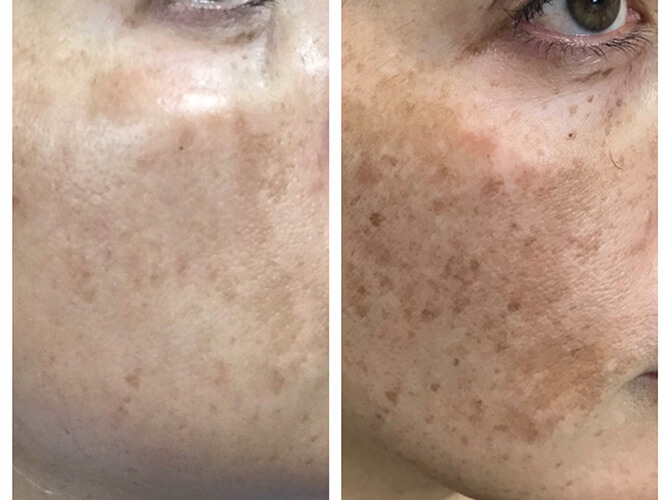 You will see continued improvement in the skin’s appearance during and after a course of 1-3 treatments with visible results after each individual treatment. You may see results in facial veins immediately after the treatment along with a darkening of the brown spots. These spots will flake off over the next one to three weeks leaving you with a glowing appearance. Lastly, you will see progressive results on any fine lines, wrinkles or scarring over the next six months as your skin naturally responds to the treatment.