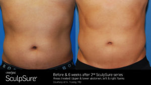 SculpSure treatments are FDA-cleared to reduce stubborn fat in the belly, love handles, back, thighs, and under the chin.